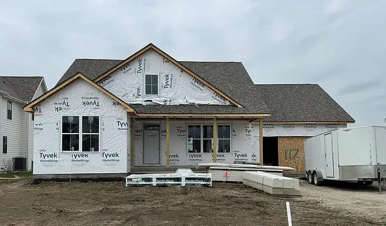This well-designed ranch home offers character, functionality, and modern style. The exterior features 100% Hardie siding, stone accents, a welcoming front porch, and a 3-car garage with a tandem stall. Inside, the kitchen boasts painted creamy white cabinets accented with honey stained cabinets on the island, custom hood vent, stylish backsplash, quartz counters, and a corner pantry. Accented with gold lighting fixtures and cabinet hardware! The living room is highlighted by gorgeous windows and a gas fireplace with a custom built-in design. The primary suite includes a private bath with a double vanity, tile shower, and walk-in closet.